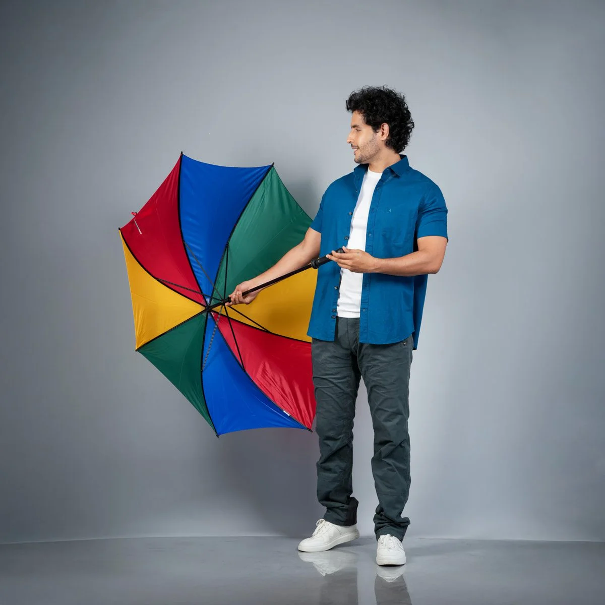 Add a touch of color to your rainy days with the Rainco 27″ Multi-Colour Gents Umbrella. Designed for durability and superior protection, this 1-fold umbrella features a 69cm, 16-rib structure, ensuring excellent wind resistance and long-lasting performance.