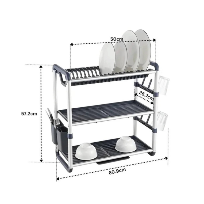 High Grade Aluminium Dish Rack - 3 tier 60*26*57 CM