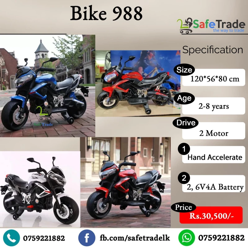 Model Name | Kids Ride on Rechargable Bike 988 Hand Accelerator |