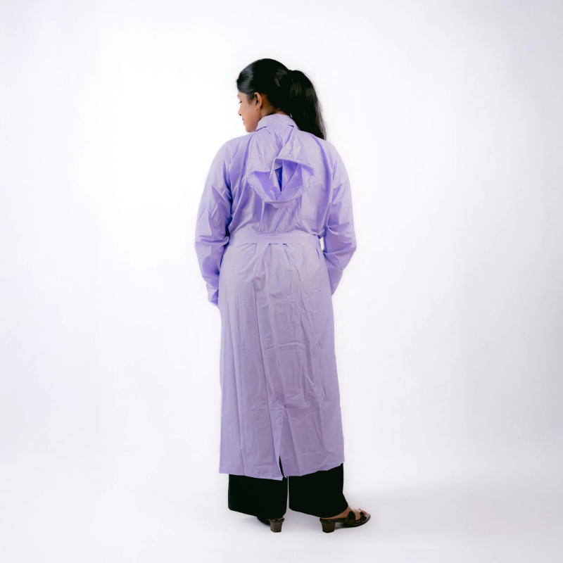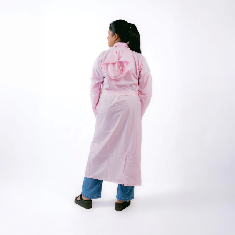 The Dream Raincoat offers durable, water-resistant protection with a hooded design, dual closures, an adjustable waist belt, and a drawstring hood for a secure fit. Lightweight with a sleek, shiny finish, it’s the perfect blend of comfort and style for rainy days.